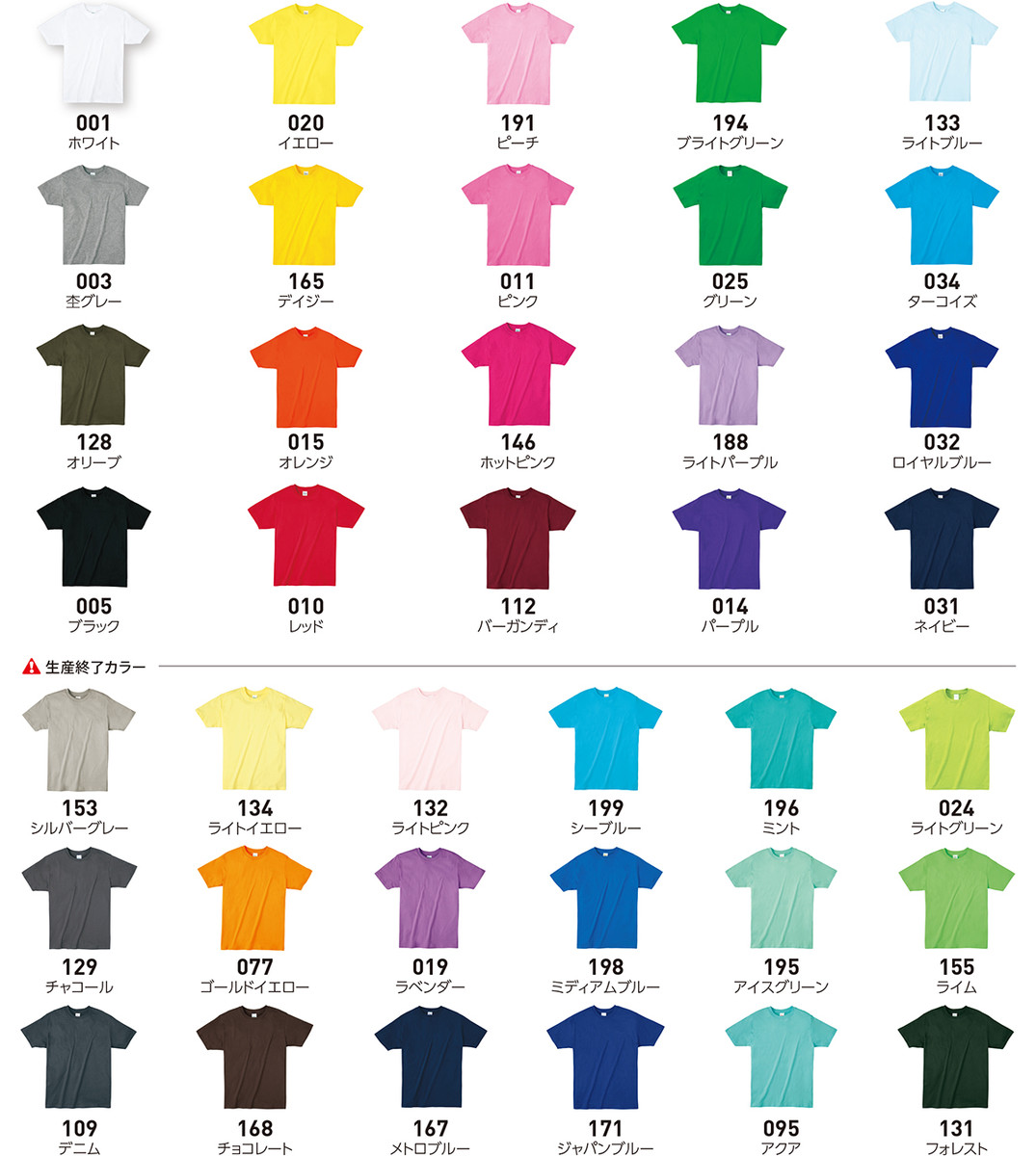 ※表は白Tシャツの価格です! カラーTシャツは¥55UPとなります!