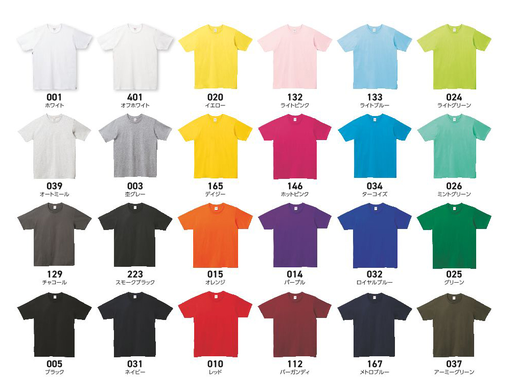 ■※カラーTシャツは¥55UP、XXLは¥220up、XXXLは¥440upになります。