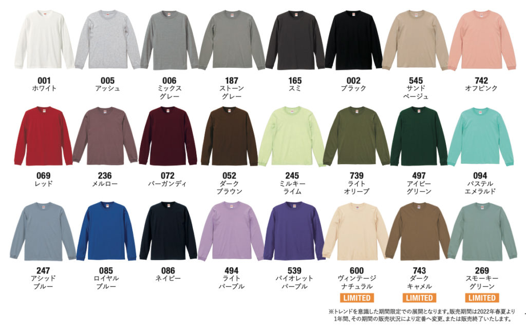 ■※カラーTシャツは¥55UP、XXLは¥220up、XXXLは¥440upになります。