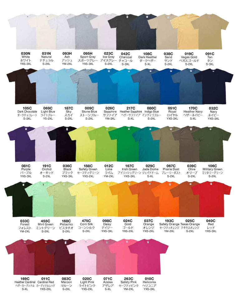 ■※カラーTシャツは¥55UP、2XLは¥220up、3XLは¥440upになります。